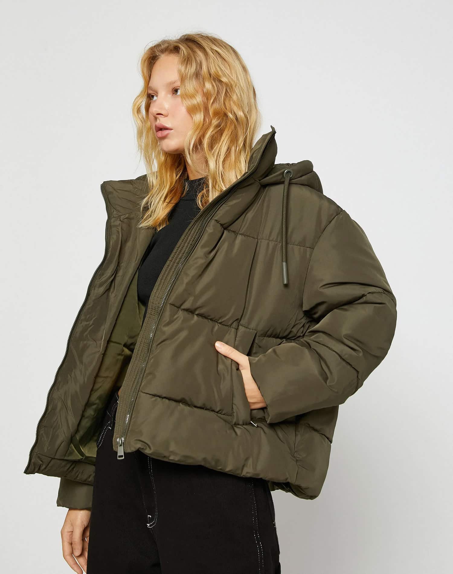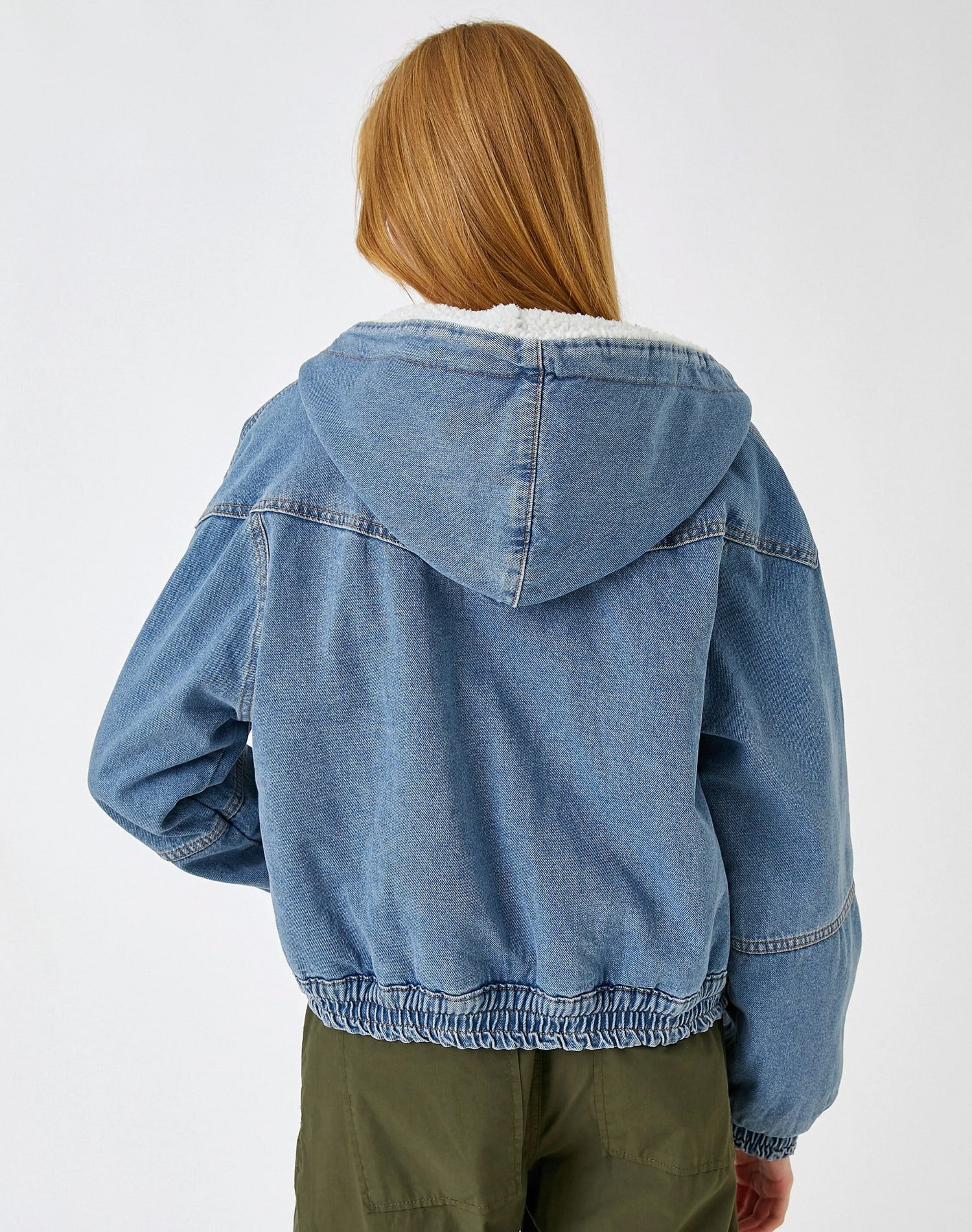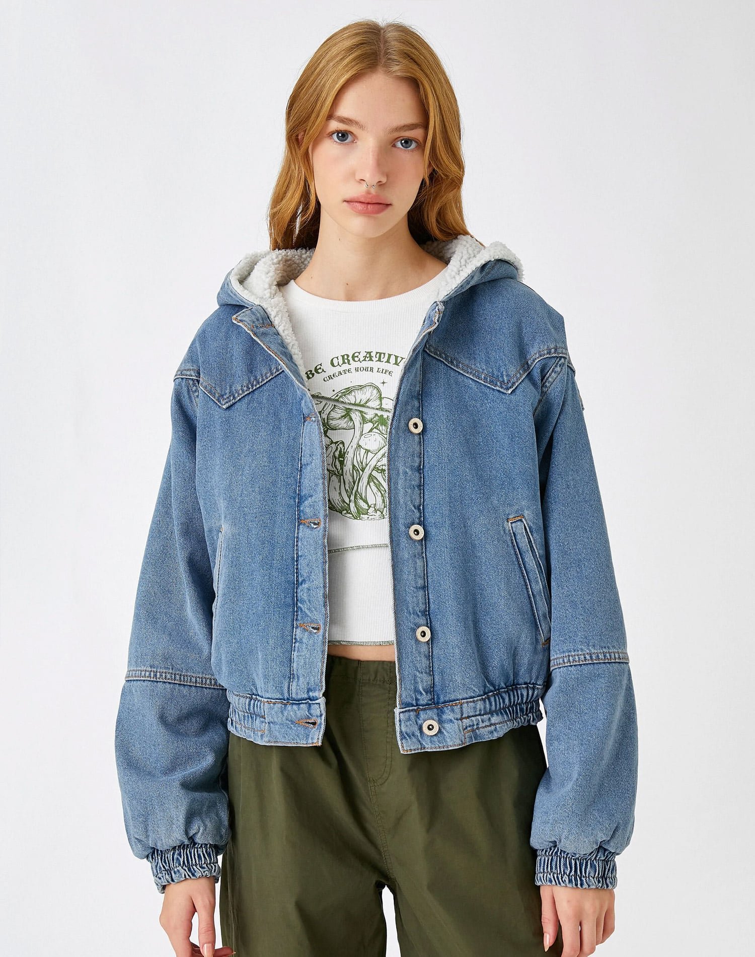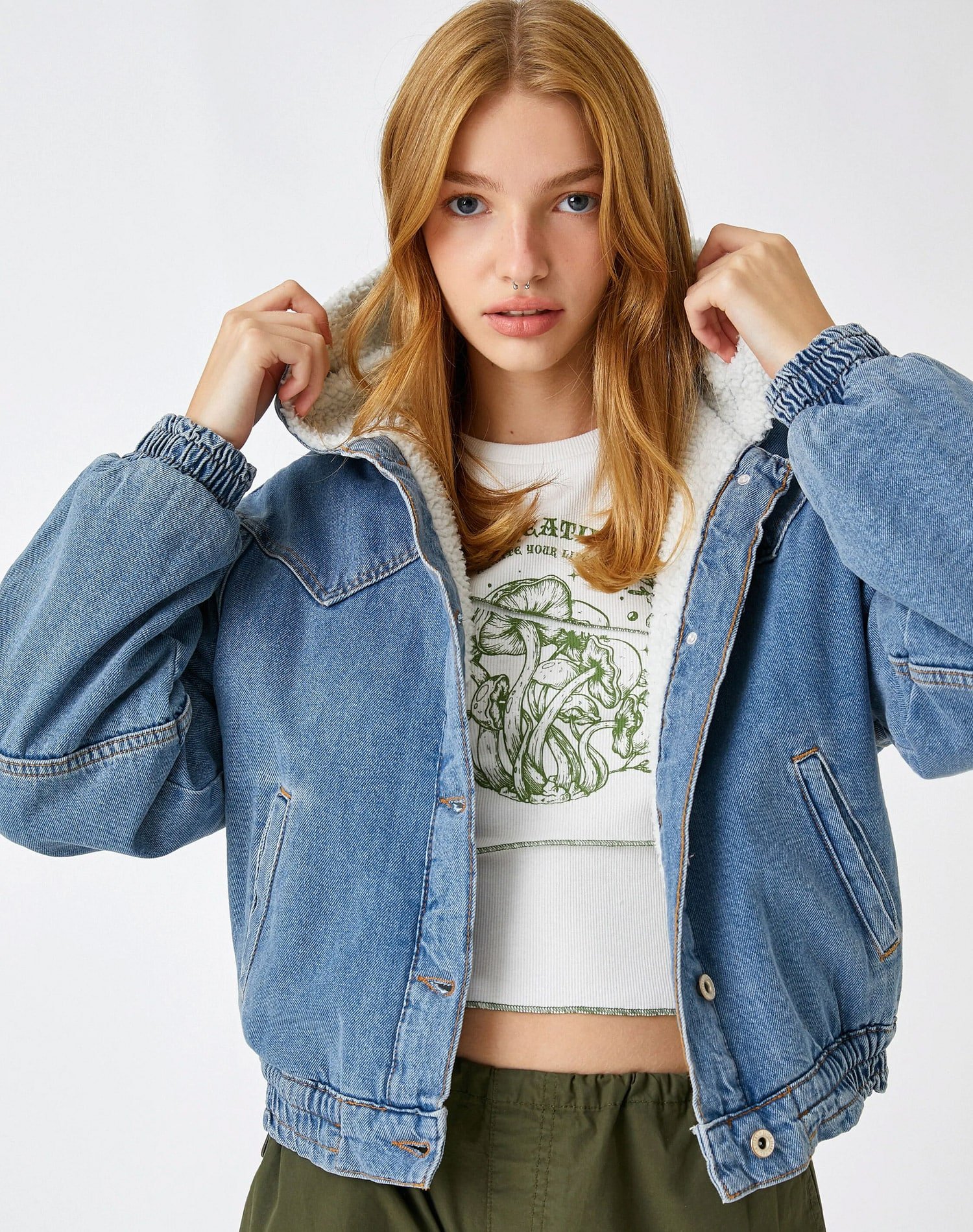College Jacket Bomber Collar Embroidered Detailed Snap Buttons Pocket